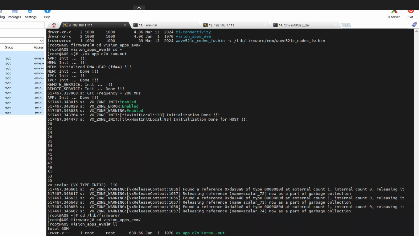 将demo拆成多个目录,解决编译问题与target ID报错问题(示例为C66,需改为C71),跑通测试程序 warning为几个scalar未release